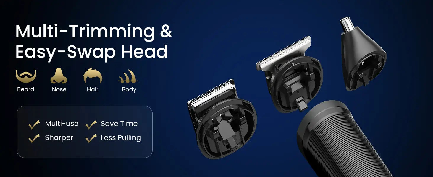 I’ve gone through a few trimmers over the years, but this one surprised me for the price. The digital display showing battery percentage is a huge plus because I know exactly when to charge it instead of guessing. All the attachments lock in place securely and swap out quickly. I use it for my beard, mustache, and even the nose trimmer head — no pulling or irritation. Waterproof makes cleanup a breeze, just rinse and go. The motor feels powerful enough to cut through thicker hair without bogging down. For under $30, this set feels like something I’d pay double for in a store."