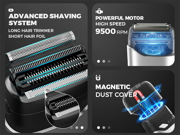 - Premium blades: Titanium-coated, 40% sharper, dual-layer foil for 0.1mm close shave.
